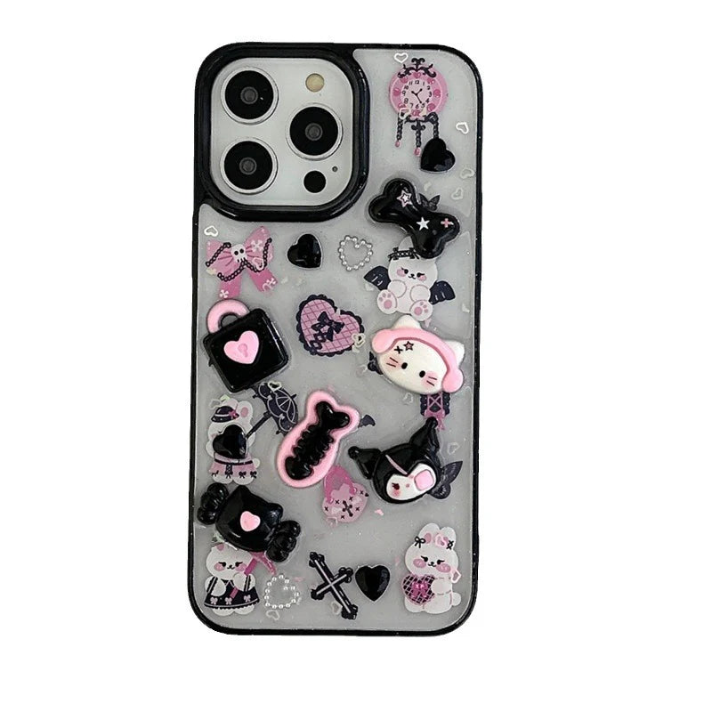 Embrace a blend of sweetness and coolness with the Whimsical 3D Kitty Cartoon Case with Charm. This case features adorable three-dimensional kitty characters, making your phone stand out with its playful and enchanting design.