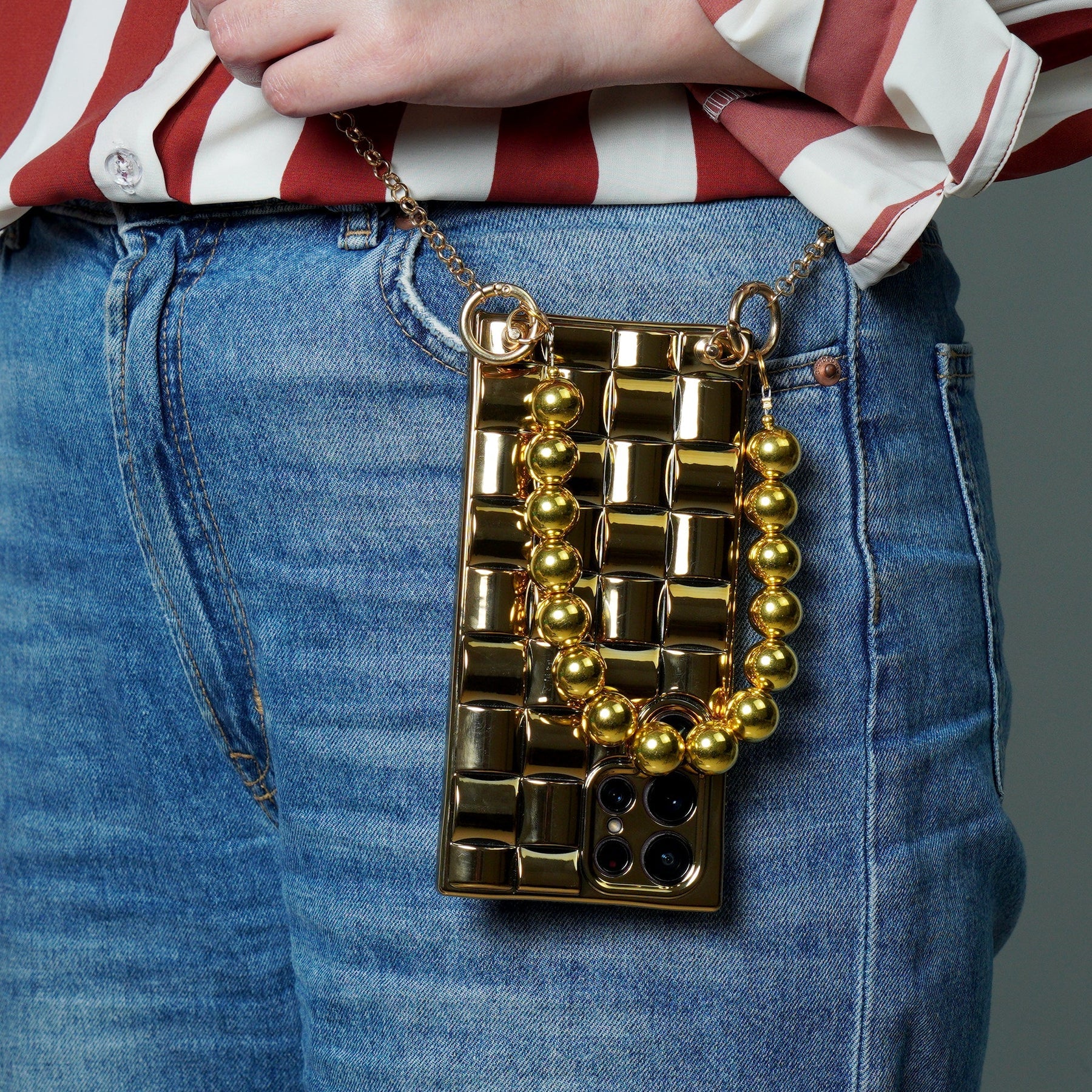 Introducing a magnificent Lanyard Metal Beads Bracelet Case for your pricey phone. The case looks appealing and the metal beads bracelet makes it convenient to hold. Along with adorable looks, the case provides complete protection to the phone from any external harm.