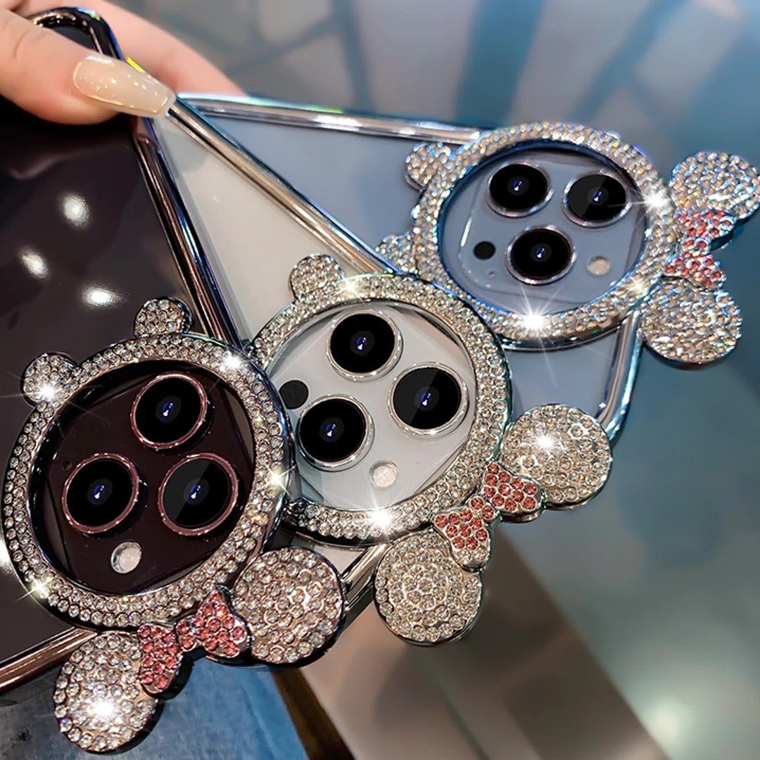 Add a touch of sparkle and glamour to your device with the cute Diamond Bear Ear case.The case is designed with shining Bear Ears on the rear side which provides better camera protection and stylish look. The shining diamonds adds bling to your phone while also keeping it protected.