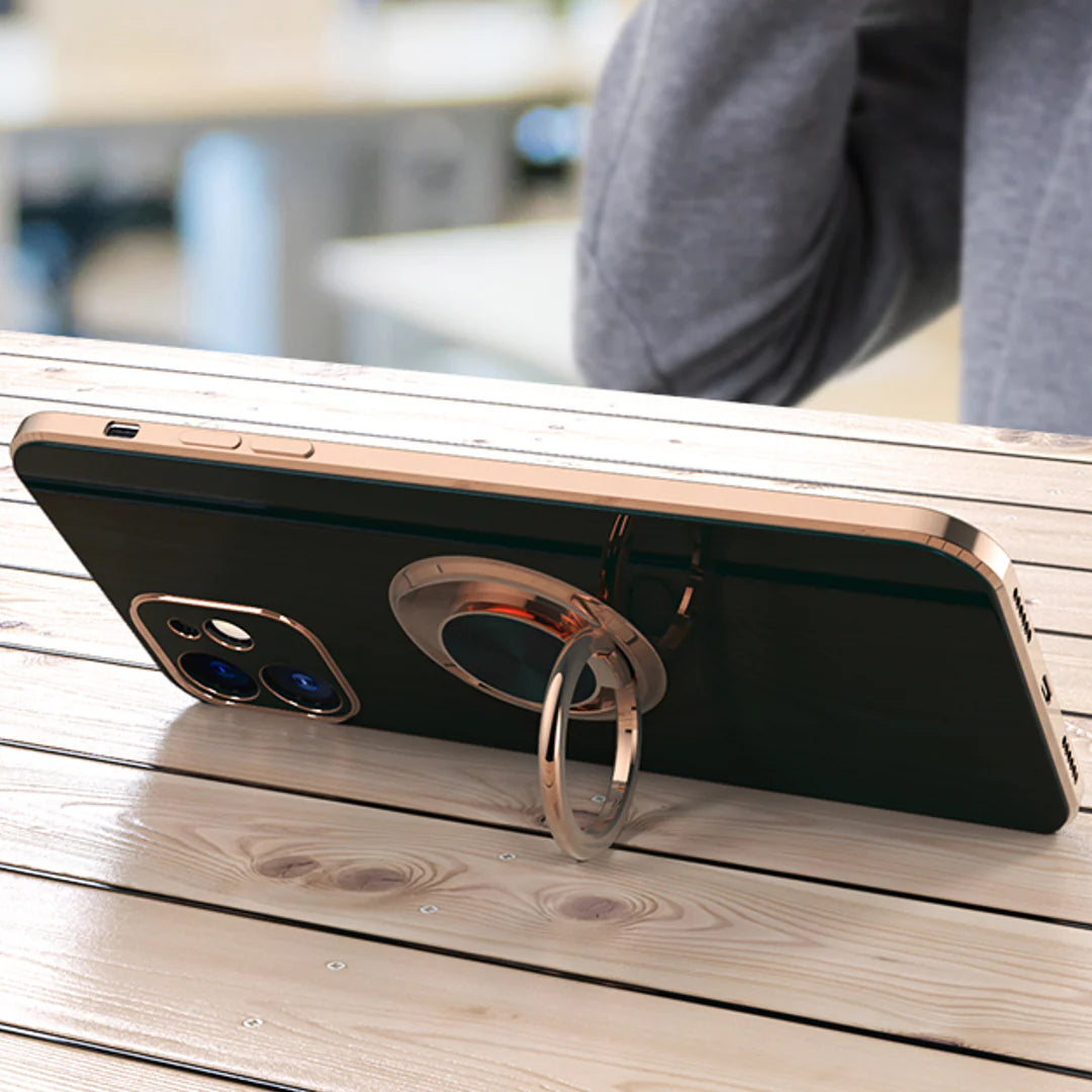 The Glossy electroplating case with Metallic Ring is the perfect case for your smartphone. The unique thing about this case is gold electroplating around borders and the metallic ring which adds an extra feature for better grip and standing height adjustments.