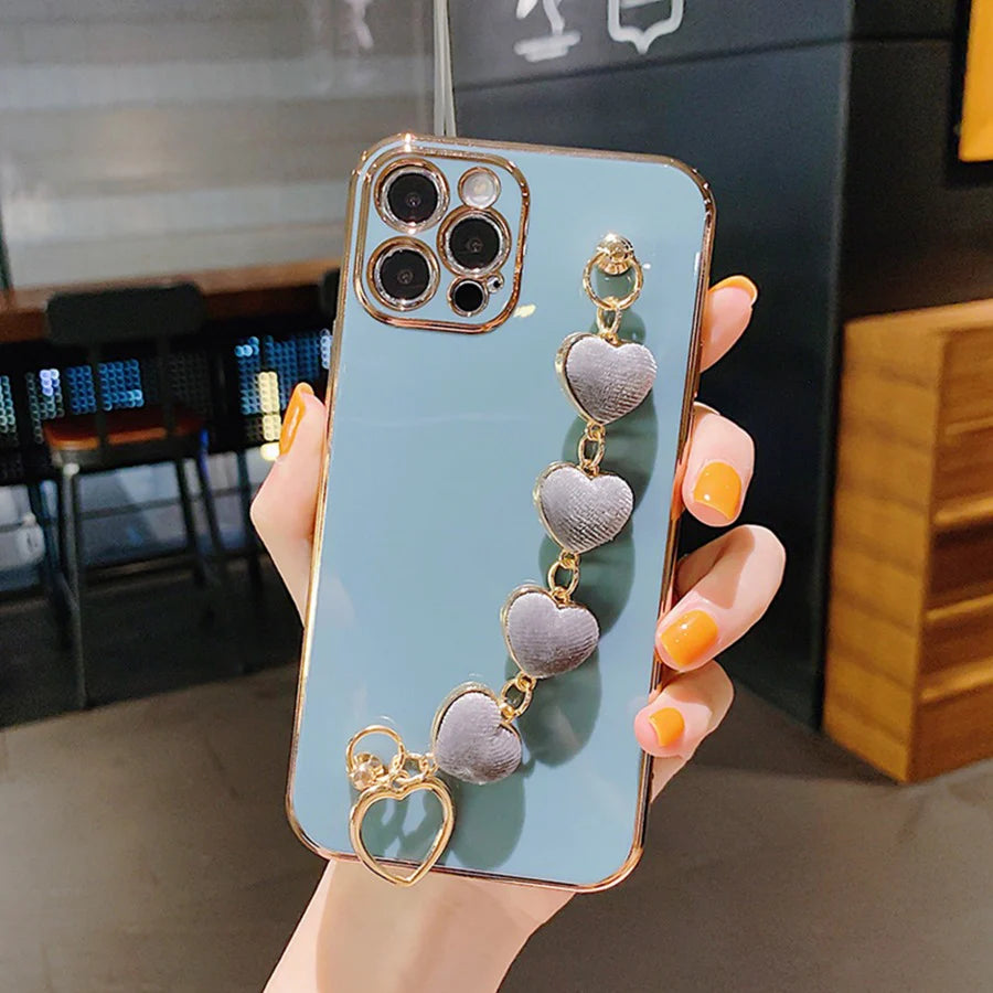 The Luxury electroplating velvet heart bracelet case is a beautifully designed case. The Velvet heart texture and electroplating line around border defines the real beauty of the case. The Case is specially designed in a view to provide extra protection over the camera lens.